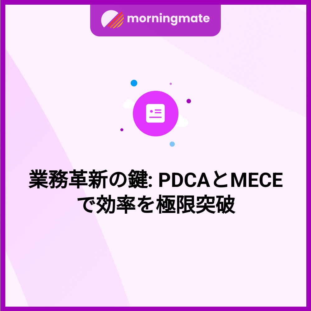 働き方の悩み1 Min Read on1月 28, 2026 業務革新の鍵: PDCAとMECEで効率を極限突破 ToDo管理の現場の悩み 現場でのToDo管理は、プロジェクトの進捗をスムーズにするために欠かせない要素です。 しかし、実際にはタスクが増えすぎて管理しきれず、重要なタスクが見落とされたり、先延ばしになったりすることがしばしばあります。…