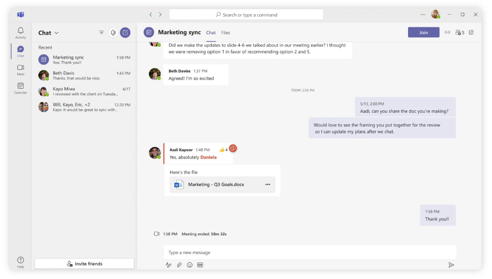 話題やプロジェクトごとにチャンネルを作成し、会話を整理しやすい設計。検索性も高く、情報共有がスムーズ。