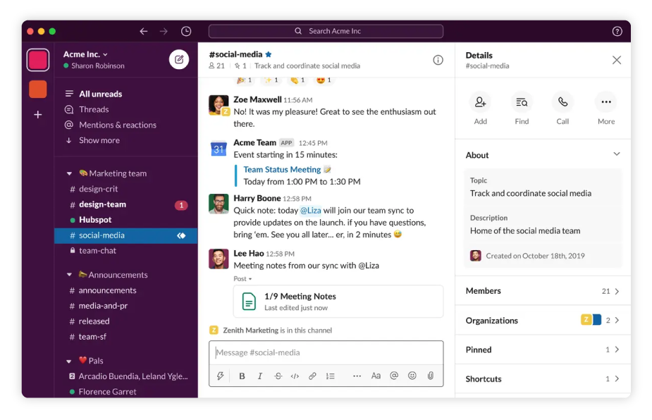 ウェビナーや大人数での会議に最適。Slack と比較すると、ビデオ会議の品質は明確に上。