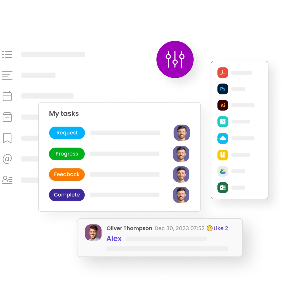 Quickly and easily filter through all your project boards to view only your tasks, uploaded files, mentions, and posts.
